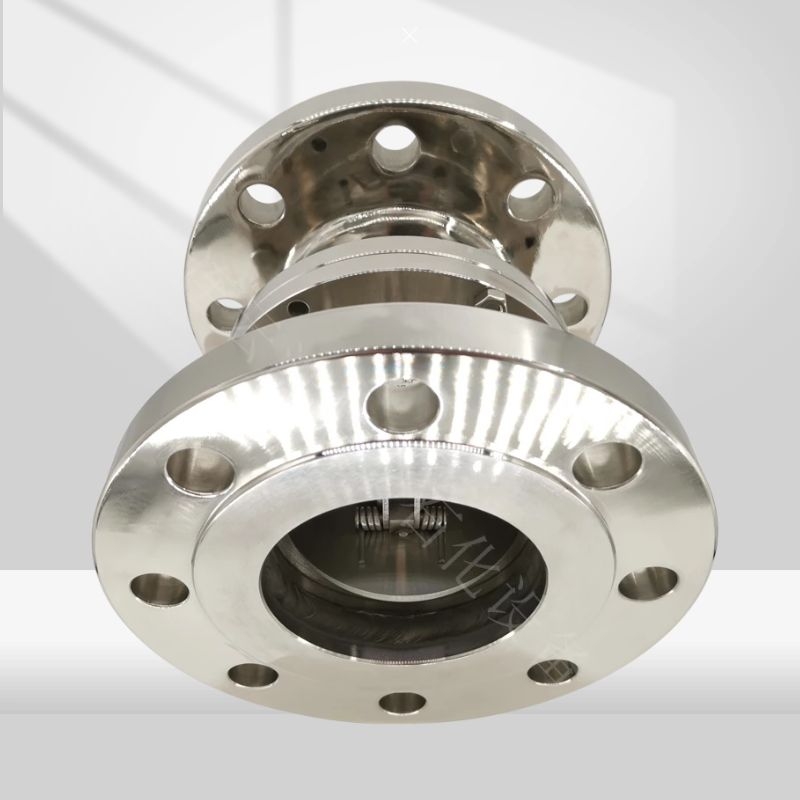 其主体由两个切断阀组成,切断阀一般为采用弹簧力关闭的单向阀,单向阀主要由壳体、阀瓣、主密封圈、主密封座、导流板等组成;两切断阀靠三只拉断螺栓连接,紧急情况下随着槽车的“逃逸”软管直接拉断连接螺栓,无须电、液等外加动力。